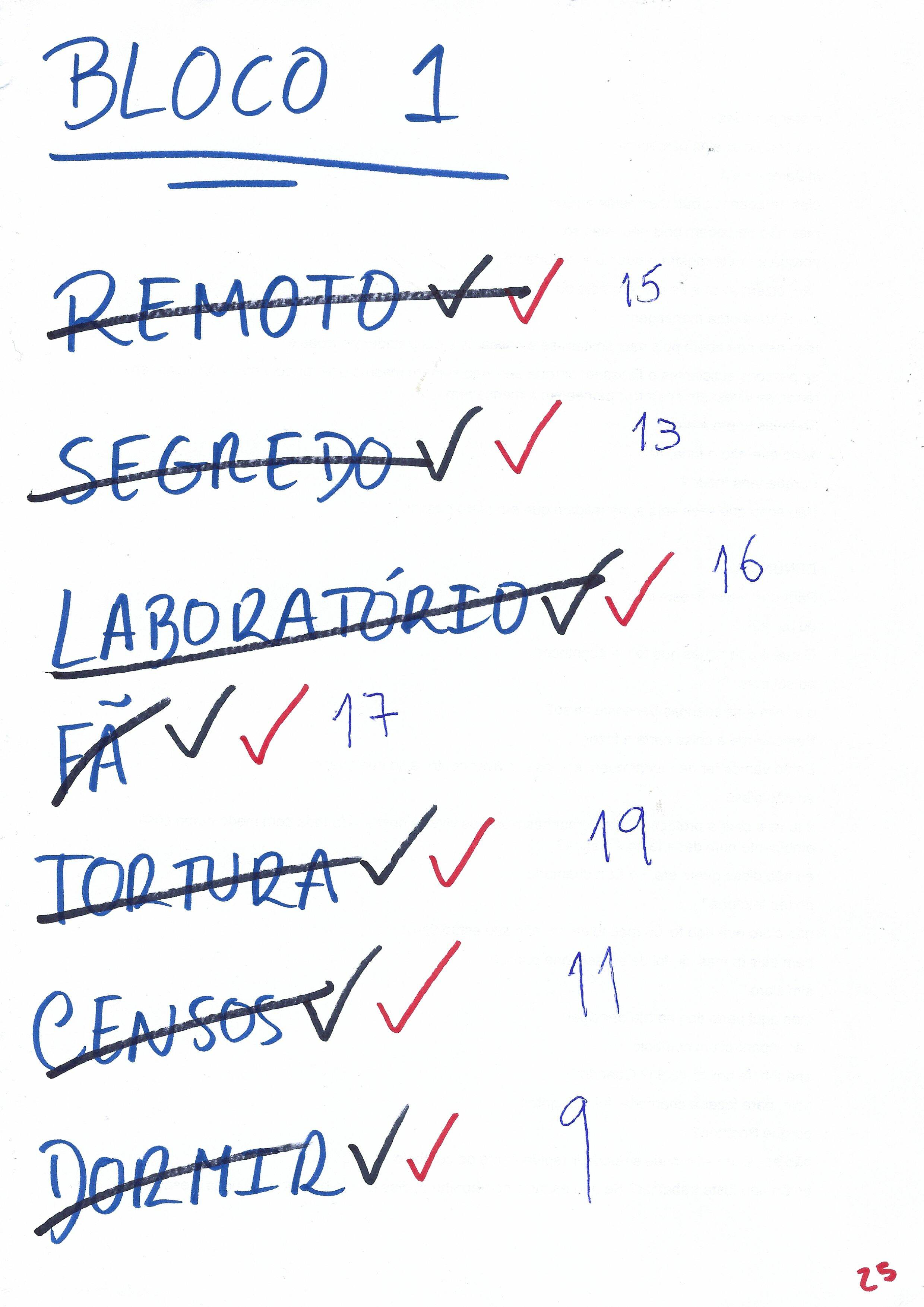 Fotografia da organização das cenas do espetáculo (bloco 1);