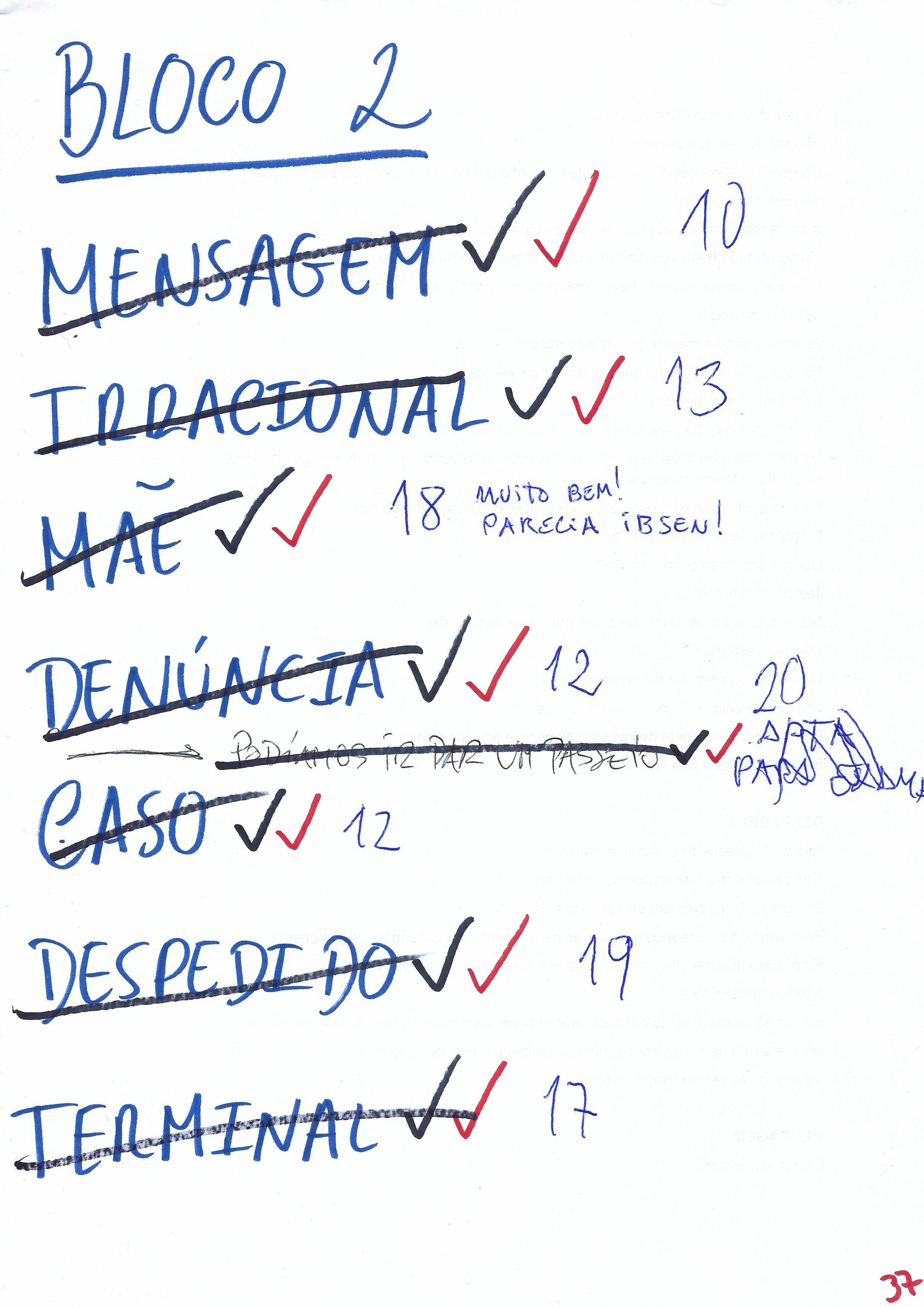 Fotografia da organização das cenas do espetáculo (bloco 2);