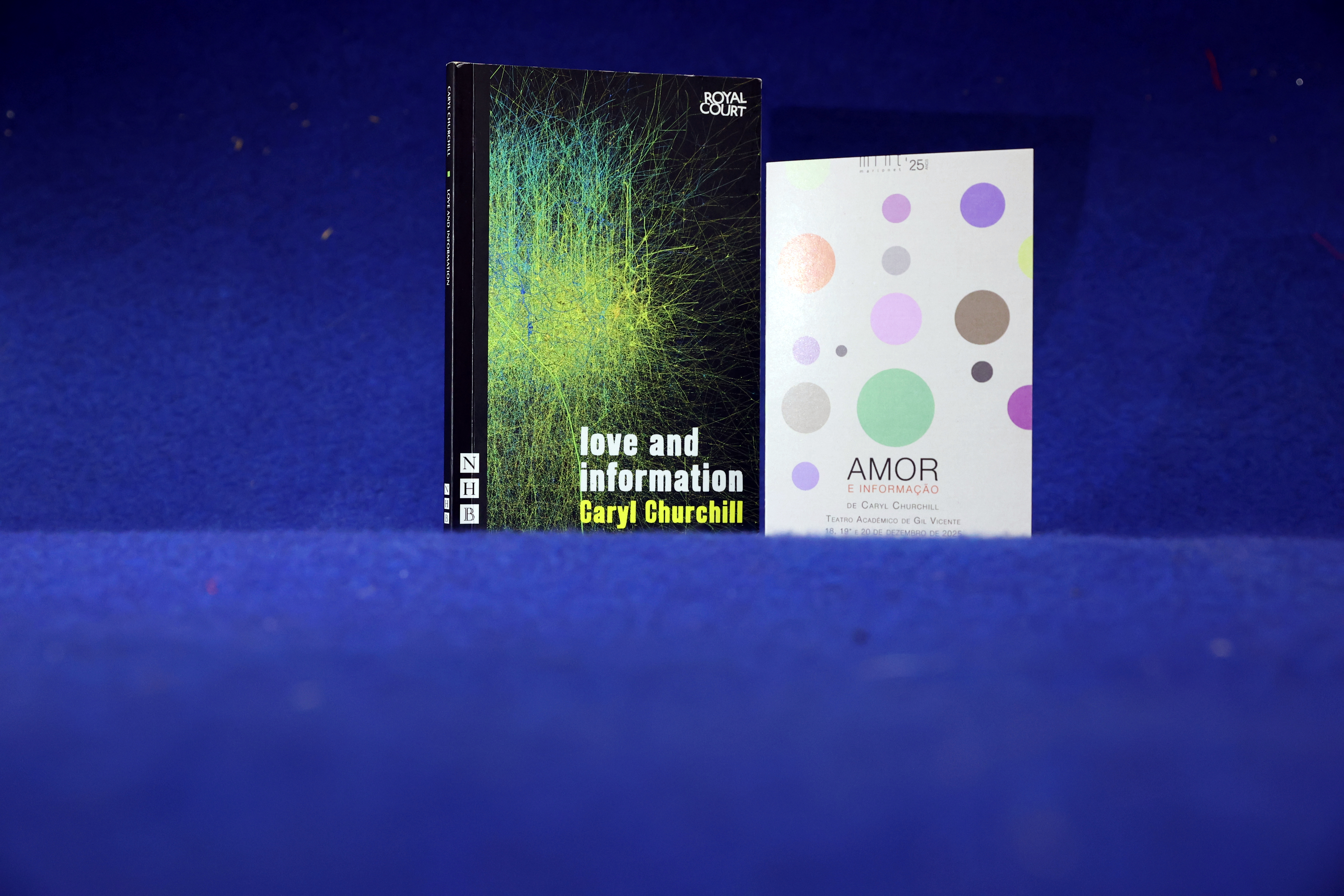 Livro do original de Caryl Churchill e o postal promocional.
