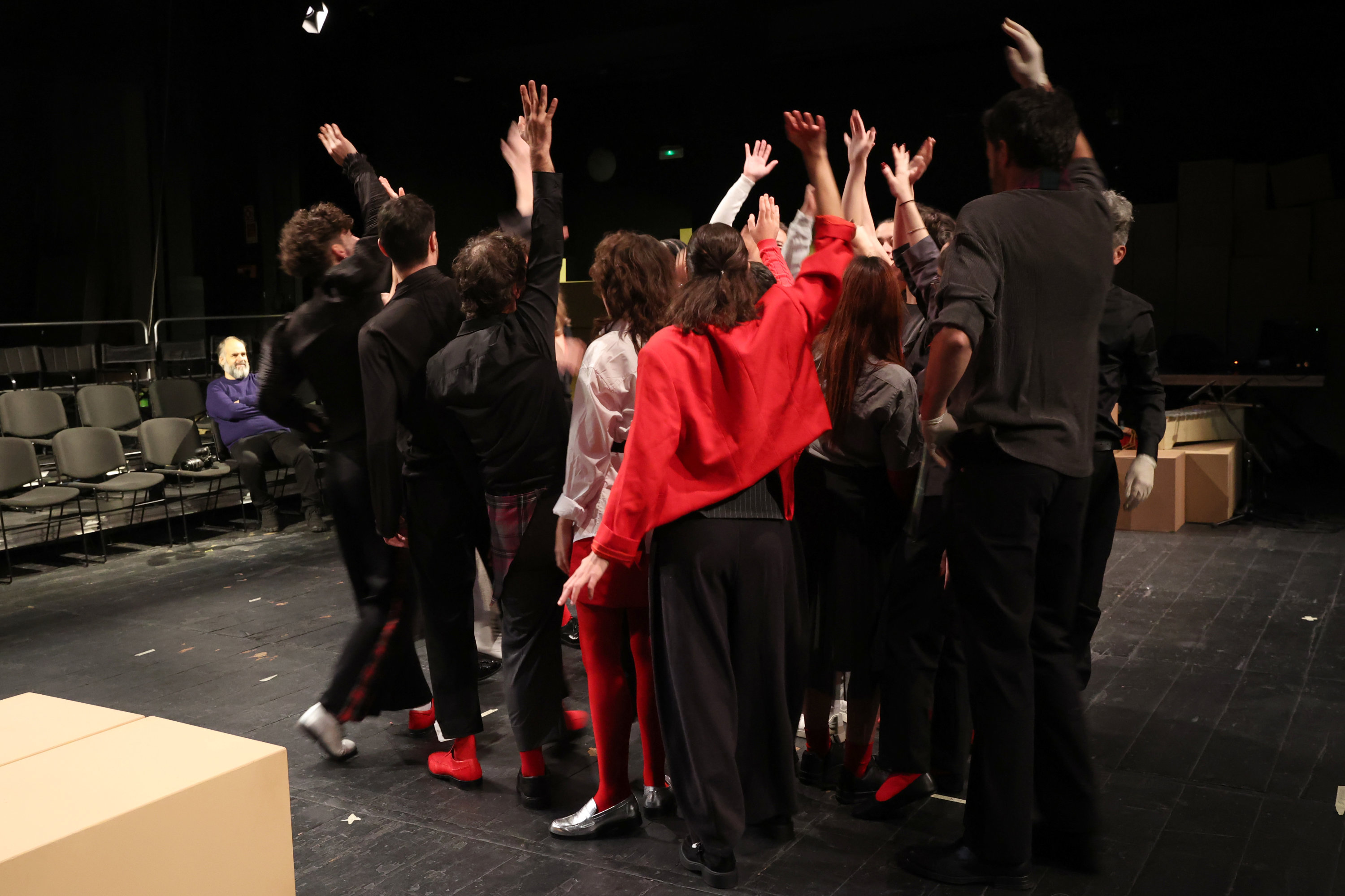 Fotografia de ensaio geral do espetáculo Amor e Informação 1;