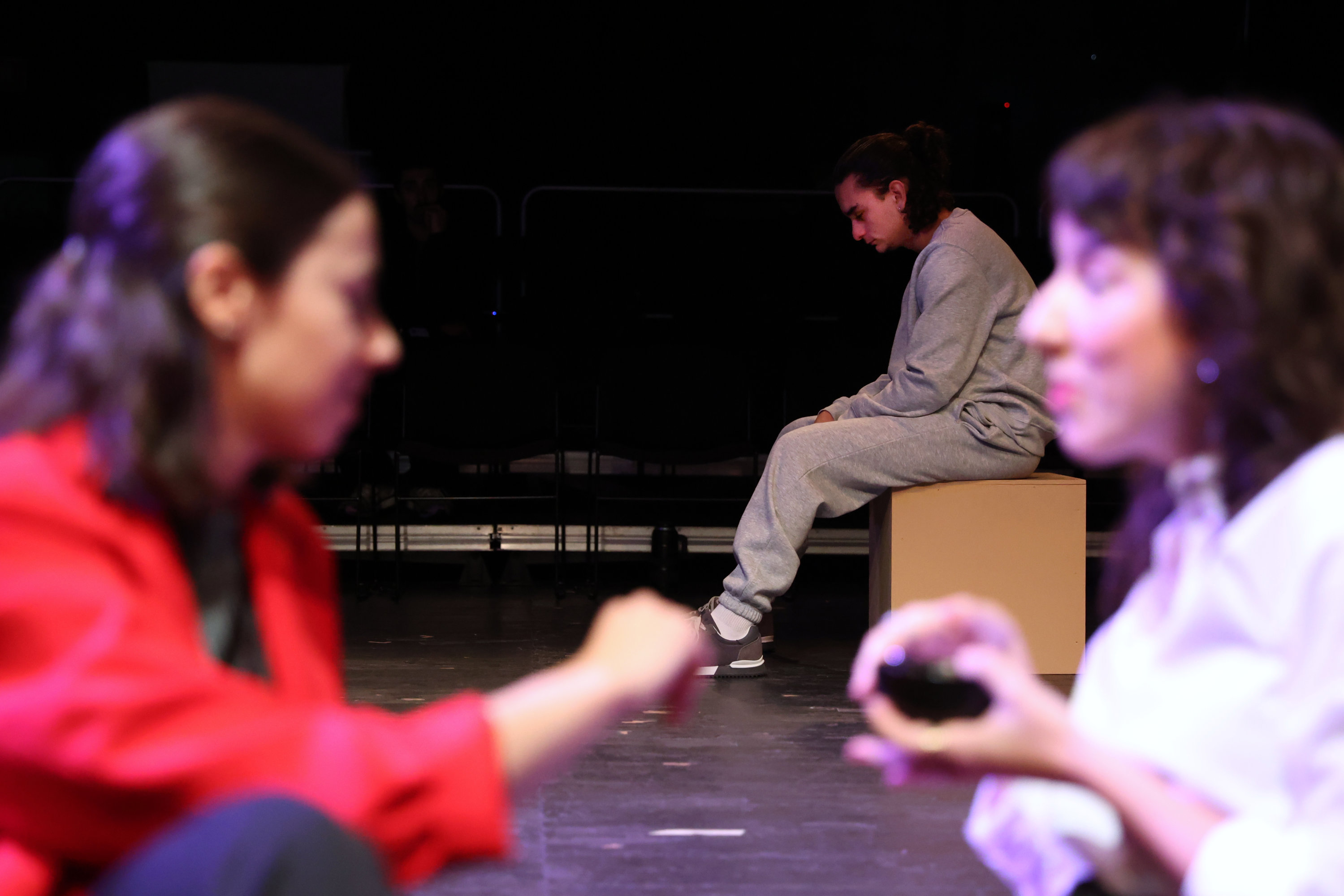 Fotografia de ensaio geral do espetáculo Amor e Informação 8;