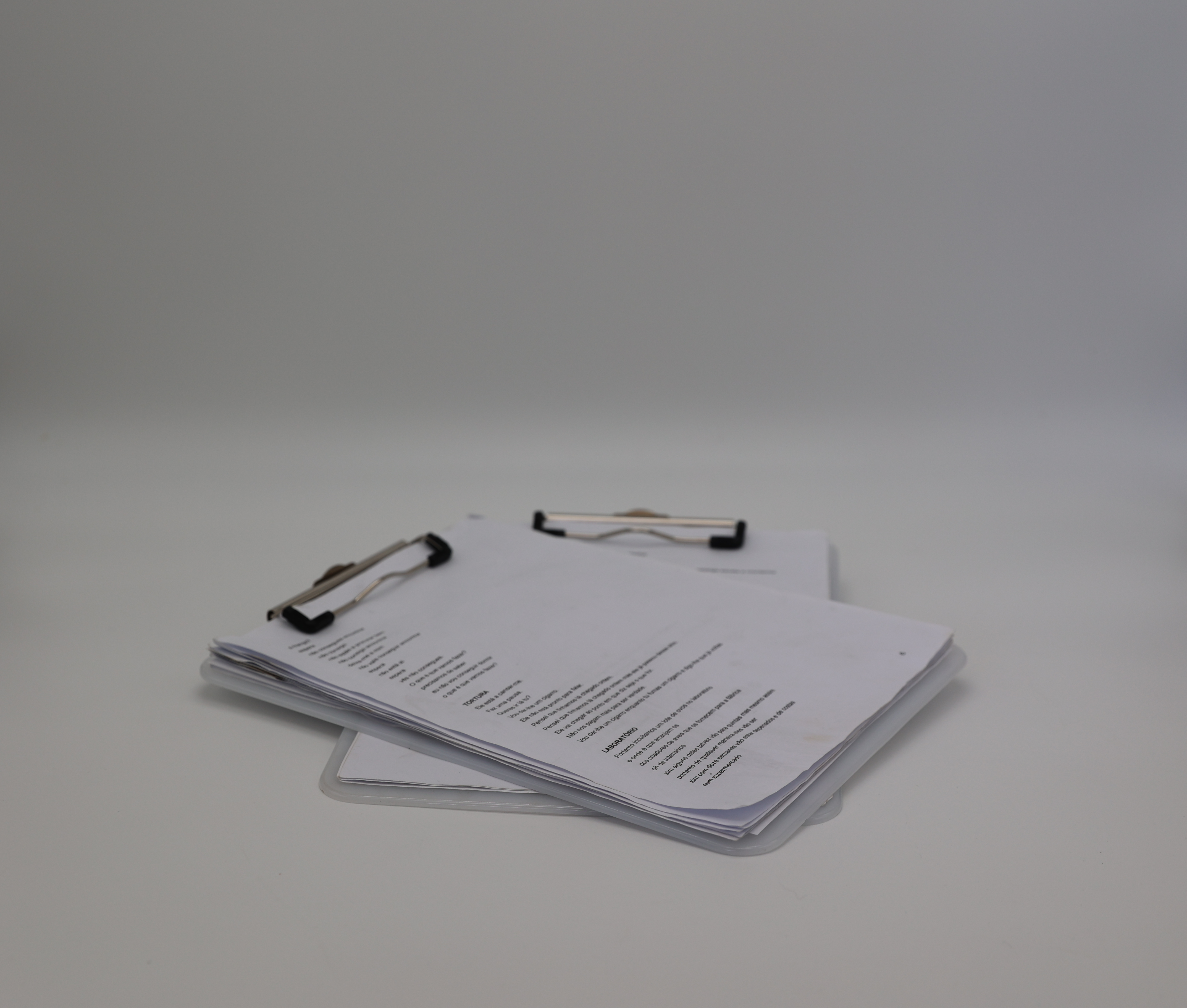 Adereços usados pelos intérpretes Ricardo Vaz Trindade e Filipe Eusébio no espetáculo Amor e Informação.